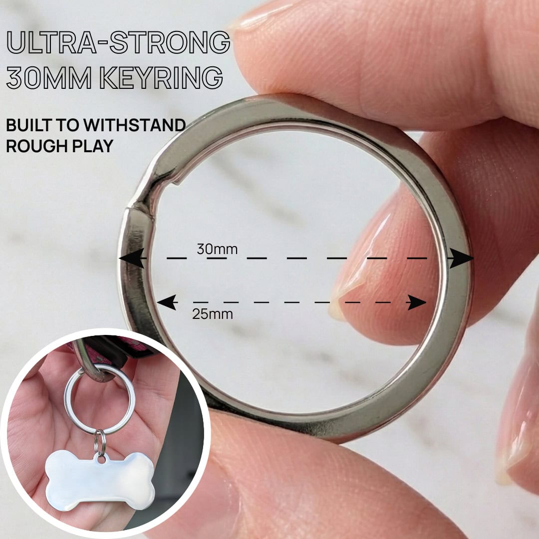 Ultra-strong, 30mm heavy-duty keyring. It’s built to withstand rough play, frantic scratches, and rolling in the dirt. Universally sized to fit almost any collar. Secure your MoodTag once and for all!